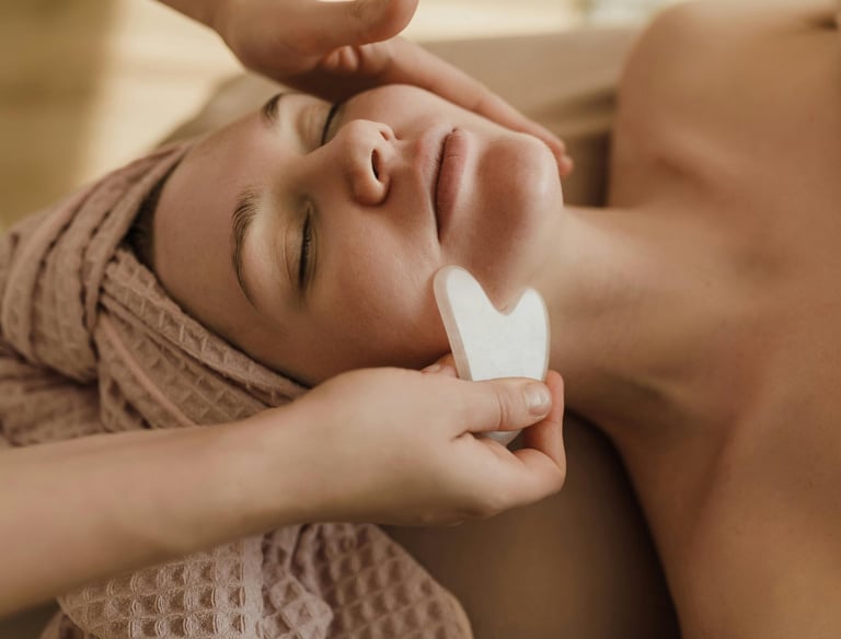 — Gua Sha, often known as “scraping therapy,” is an ancient technique that encourages circulation and lymphatic drainage by gently gliding a smooth stone over the skin. —