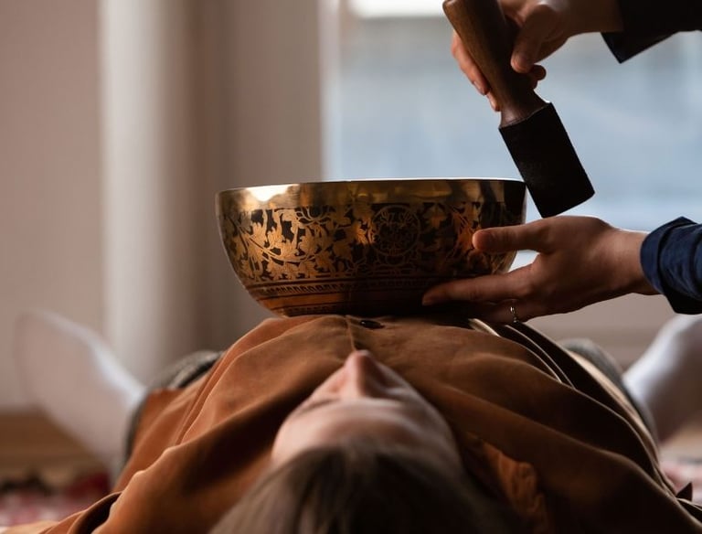 Sound therapy uses the rich, resonant tones of Tibetan singing bowls to guide the nervous system into deep relaxation and coherence.